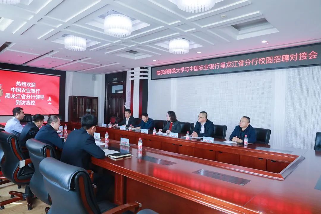 为贯彻落实教育部、省教育厅《关于开展高校书记校长访企拓岗促就业专项行动的实施方案》相关要求,开拓毕业生就业岗位,9月27日,我校邀请中国农业银行黑龙江省分行入校开展校园招聘对接会。校党委副书记、工会主席郭砾,中国农业银行黑龙江省分行党委委员、副行长兼哈尔滨分行党委书记、行长孟喆出席会议。中国农业银行黑龙江省分行、哈尔滨分行、自贸区支行相关负责人,我校学生就业指导处、教务处相关负责人参加会议。