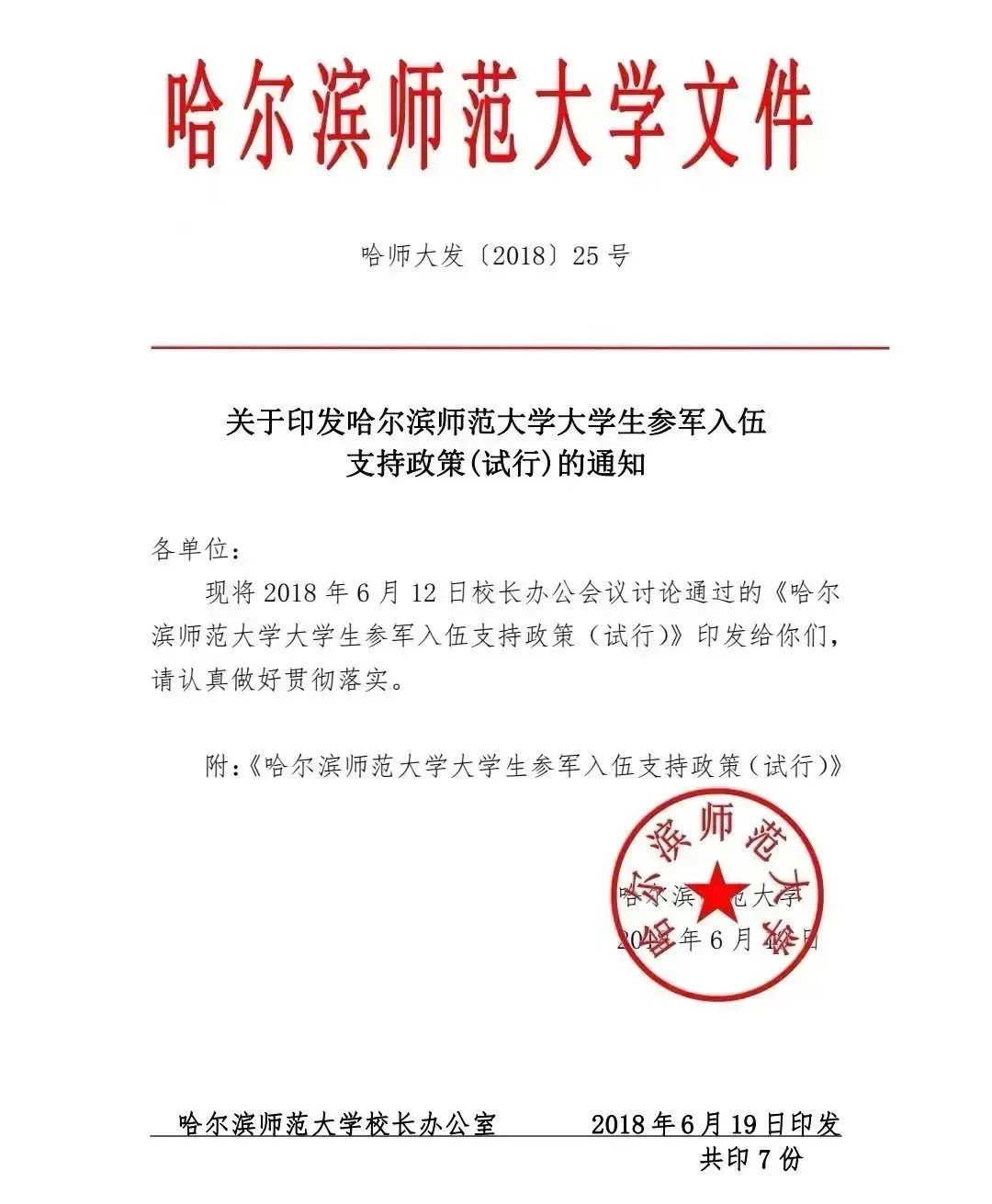 党管武装贯彻落实。武装部全面落实党中央、国务院、中央军委决策部署,紧紧围绕省委和上级武装部门工作要求,全面推进征兵宣传工作,不断强化党对武装工作的领导,制定了《哈尔滨师范大学大学生参军入伍支持政策(试行)》等文件。十年来,我校共组织千余名学生报名参军入伍,其中400余名学生成功圆梦军营。2012年学校成立国旗护卫队,进行日常半军事化管理,承担升旗护旗、举办爱国主义教育活动等各类任务,充分展现我校大学生朝气蓬勃、积极向上的精神风貌,成为学校武装工作中的有生力量。2020年,学校成立退役军人服务中心,为退伍入学、复学的同学提供服务和保障,取得良好效果。2022年,学校被省征兵工作领导小组选为试点建设参军预备队高校(全省5所本科院校),目前参军预备队已建立,并正常开展日常爱国主义教育、体能训练等活动,帮助准备参军的学生打好基础,提升适应能力。