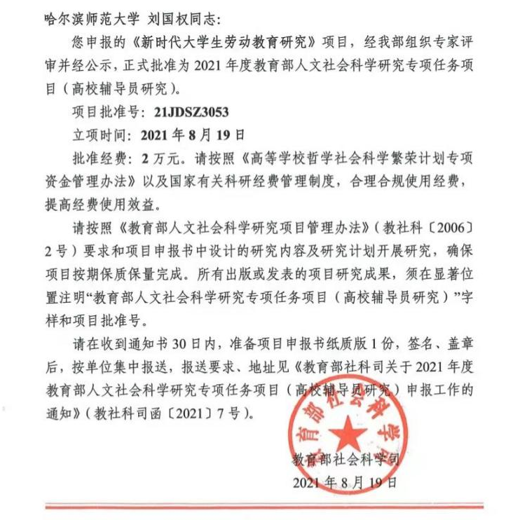 思政工作获得高度评价。2017年6月6日,时任教育部部长陈宝生到我校调研时评价我校思政工作:“有自己的特色,有自己的品牌,树立了自己的旗帜,应予充分肯定。”2017年7月6日,中宣部、中组部、教育部三部委督查我校落实全国高校思想政治工作会议精神时指出:“哈师大的思政工作一直在实践、一直在探索、一直在创新,为全国高校树立了榜样,工作经验值得在全国推广。”2018年5月,在本科教学工作审核评估中,审核评估专家组在反馈意见中明确指出,“哈师大一直以立德树人为根本任务,为国家经济建设和社会发展做出重要贡献。学校以创新构建‘112349’思想教育工作模式为抓手,形成了大思政的育人格局……营造了全员、全过程、全方位育人的良好氛围”。
