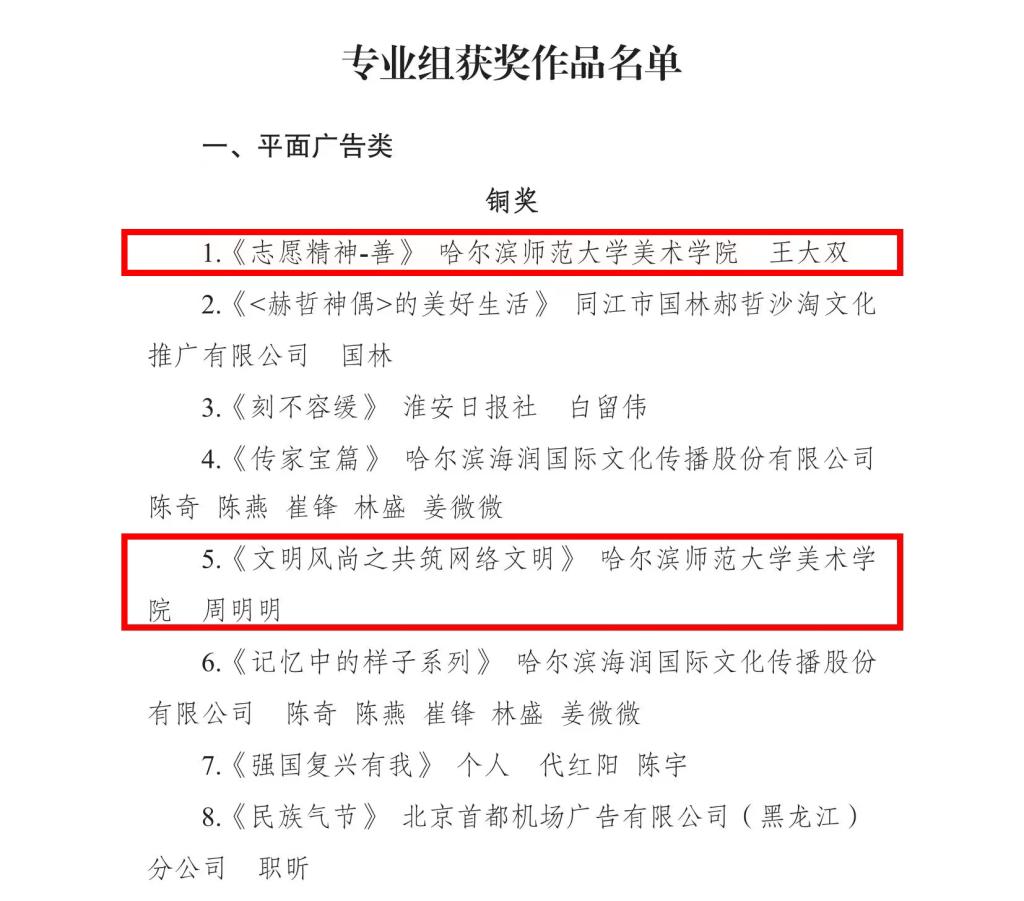 近日,“永远跟党走”公益广告创作大赛活动获奖名单公示。我校斩获金奖2项,铜奖6项,优秀奖1项,共9个奖项,荣获“年度十佳公益广告创作单位”“年度优秀组织奖”称号。