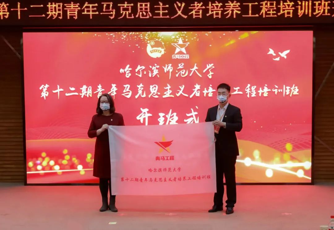 (刘强/文)11月16日下午,我校在梦溪宾馆二楼报告厅举行第十二期青年马克思主义者培养工程培训班开班式。校党委副书记、工会主席郭砾出席仪式。学校党委宣传部、学生工作部(学生处、武装部)、马克思主义学院负责同志,学校团委全体教师、学校第十二期青年马克思主义者培养工程培训班师生代表现场参加会议。共青团杜尔伯特蒙古族自治县委员会负责同志,我校“‘青马工程’乡村工作站”杜尔伯特蒙古族自治县参训学员,学校第十二期青年马克思主义者培养工程培训班指导教师,各学院团委专、兼职团干部,校院两级学生组织学生干部,学校第十二期青年马克思主义者培养工程培训班学员线上参会。开班式由校团委书记刘春玲主持。