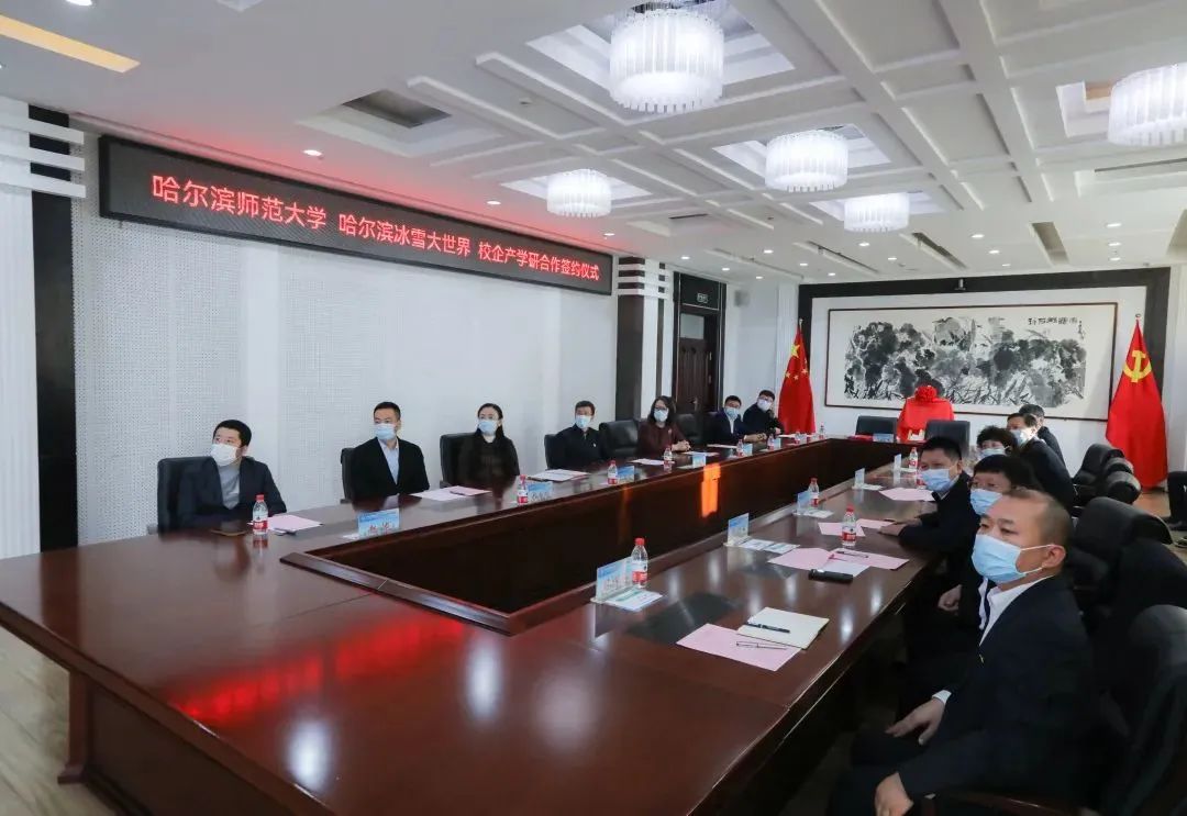(赵鹤/文)11月17日上午,哈尔滨师范大学与哈尔滨冰雪大世界股份有限公司校企产学研合作签约暨创意设计实践中心揭牌仪式在我校行知楼915室举行。校党委书记孙立军,党委副书记、工会主席郭砾,哈尔滨市委宣传部副部长于丽,哈尔滨市文化广电和旅游局党组书记、局长王洪新,哈尔滨太阳岛集团有限公司党委书记、董事长孔庆滨,哈尔滨太阳岛集团副总经理、哈尔滨冰雪大世界公司党委书记、董事长郭宏伟及相关学院党委书记、院长、教师代表出席仪式。仪式由校党委宣传部部长张艳君主持。