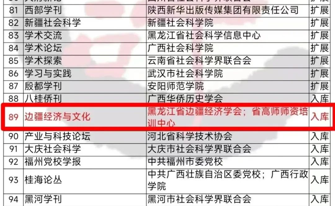 (李敏佳/文)2023年1月,中国社会科学评价研究院公示《中国人文社会科学期刊 AMI 综合评价报告(2022年)》,我校6种期刊被列入AMI综合评价相关学科行列期刊名单。《黑龙江高教研究》入选教育学学科核心期刊,《北方论丛》《继续教育研究》《哈尔滨师范大学社会科学学报》分别入选综合性人文社科学科、教育学学科、高校综合性学报扩展期刊,《边疆经济与文化》《艺术研究》分别入选综合性人文社科学科、艺术学学科入库期刊。入选期刊数量位居我省同类单位首位、全国师范类高校前列。