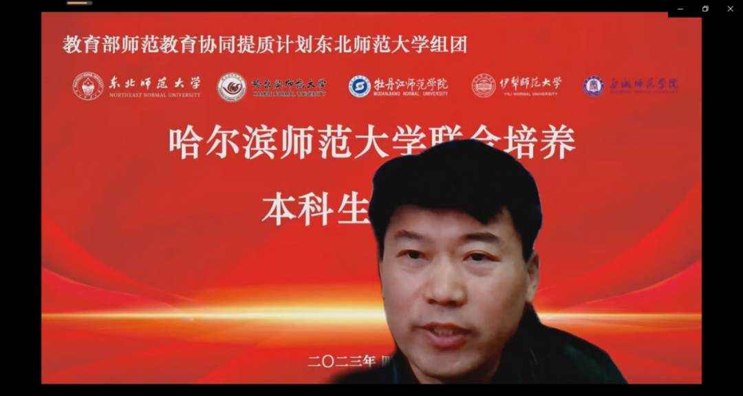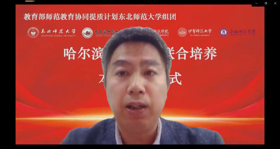 (李苗/文)为深入贯彻落实教育部办公厅《关于实施师范教育协同提质计划的通知》精神,积极推进教育部师范教育协同提质计划DG3本科生联合培养项目顺利实施,4月6日下午,学校以线上线下相结合的方式,召开了教育部师范教育协同提质计划东北师范大学组团哈尔滨师范大学联合培养本科生开学式。我校党委副书记李庆霞、牡丹江师范学院副校长程爽、伊犁师范大学副校长居来提·沙比尔、白城师范学院副校长康建强、东北师范大学教务处副处长王向东,54名联合培养本科生,教务处班子成员、相关学院领导及教师代表参加会议。会议由教务处处长姜洪泉主持。