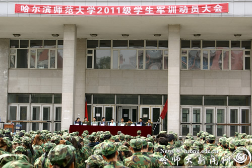 金风送爽,丹桂飘香。9月17日上午和9月19日下午,我校分别在江南校区、江北校区、呼兰校区举行了2011级新生军训动员大会。学校党委副书记王为正、王广明,党委常委、副校长李凤飞,党委常委、纪委书记蒋晶洁出席了动员大会,学校相关部门和学院负责军训的领导、全体2011级参训学生参加了大会。