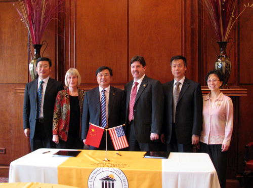 11月21日,访问团访问了美国北卡罗来纳大学彭布洛克分校,该校是我校的长期友好合作院校。近几年,我校已有10余名学生到该校留学。此次访问,双方就合作办学事宜进一步磋商,并就本科2+2学制、本硕连读1+2+1+2学制以及2+2+2学制三个合作项目签署了《中国哈尔滨师范大学与美国北卡罗来纳大学彭布洛克分校合作备忘录》。同时,双方还就共同培养师范生以及教师长短期培训等合作事宜进行了商讨。