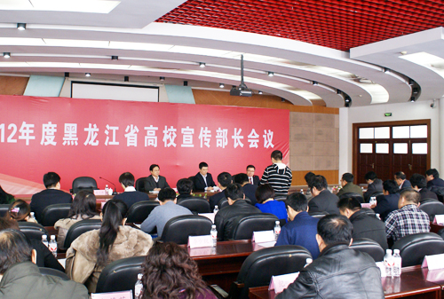 3月7日,2012年度黑龙江省高校宣传部长会议在我校松北校区图书馆一楼报告厅召开。省委高校工委副书记李东明、我校党委书记、党委副书记王广明、省委高校工委宣传部部长裘杰出席会议,全省各高校宣传部部长参加会议。