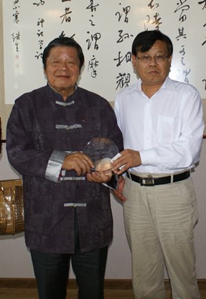 图2 校长王选章同汤恩佳先生互赠礼物
