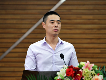 图 报告团成员佳木斯市郊区林业局造林工作站站员张丽莉老师爱人李梓烨作报告