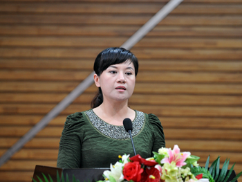 图 报告团成员黑龙江人民广播电台记者邹韵作报告