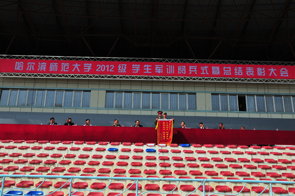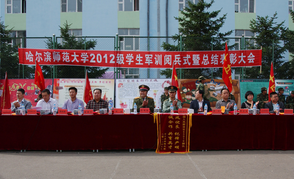 9月17日上午,我校分别在呼兰校区、江南校区、江北校区隆重召开2012级学生军训阅兵式暨军训总结表彰大会。省军区副参谋长刘凤奇大校、省军区学生军训办公室主任刘俊清大校应邀出席了呼兰校区学生军训阅兵式暨军训总结表彰大会。我校党委副书记王为正,党委常委、副校长李凤飞,党委常委、副校长徐晓风等学校和各部门及各学院领导分别出席了各校区阅兵式暨军训总结表彰大会。
