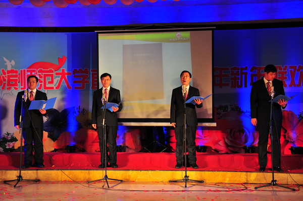 党委书记、王选章代表学校党政领导班子向全体机关干部职工致以新年的问候。党委书记发表了热情洋溢的讲话,他充分肯定了机关干部职工为学校的发展建设作出的贡献,希望全体机关干部继续以学校发展为己任,坚定信心、创新求实、团结和谐,为实现建设以教师教育为特色的高水平教学研究型综合性大学的目标做出新的贡献。