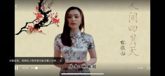越南留学生阮武清芳朗诵的《人间四月天》,从中国传统服装、配乐、背景的使用到细腻柔美的情绪渲染,展现了富有新意的创作。