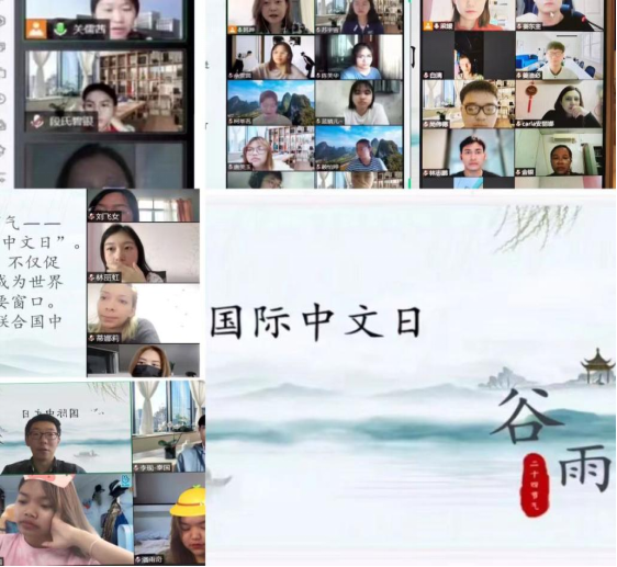 中文日主题课:在谷雨这一天,我校教师为留学生介绍了“中文日”的由来、庆祝活动以及二十四节气之谷雨,并带学生云端欣赏了北京冬奥会开幕式中二十四节气的精彩片段,学生们被深深吸引,纷纷分享了自己学习汉语的心得体会和自己与中国、体验中华文化的故事。
