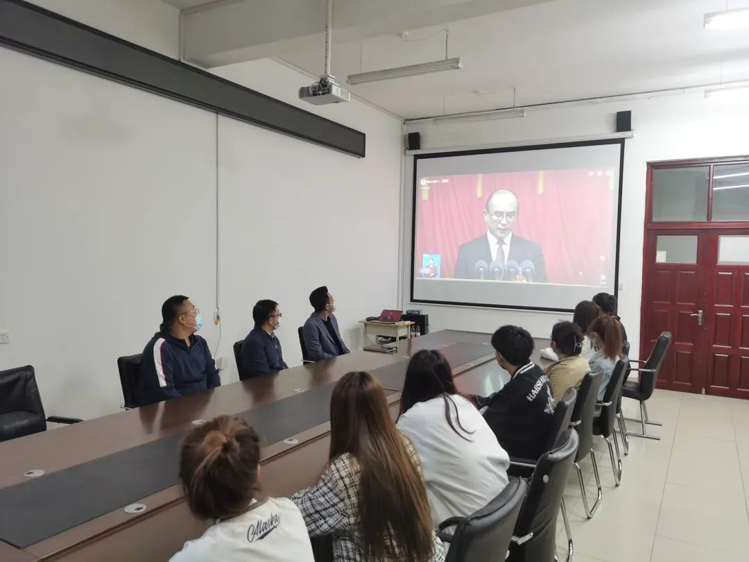 图 学校领导、党政部门主要负责人集中收看大会实况