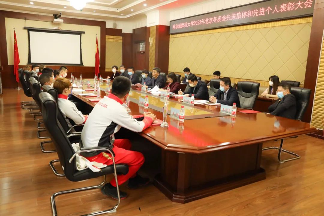 会上,臧淑英宣读了《哈尔滨师范大学关于表彰2022年北京冬奥会先进集体和先进个人的决定》。孙立军为受表彰的先进集体和先进个人颁奖。体育科学学院院长王韶峰,附属中学党委书记张静萍,受表彰教师代表、体育科学学院水冰教研室主任邓雪峰,学生代表、体育科学学院2021级硕士研究生栾常铭分别在大会上发言。