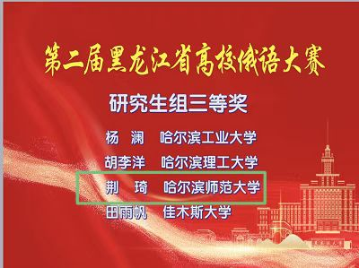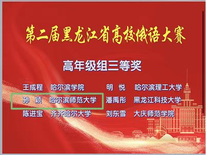 (徐涛/文)2022年5月27日—28日,在黑龙江省教育厅高等教育处支持下,由黑龙江省高等学校外国语言文学类专业教学指导委员会、黑龙江省普通高等学校创新创业教育指导委员会、黑龙江省俄语学会主办,黑龙江大学承办的第二届黑龙江省高校俄语大赛在线上举办。经过角逐,我校斯拉夫语学院2020级本科生肖铭达、杨思彤荣获低年级组二等奖,2019级本科生孙颖荣获高年级组三等奖,2020级硕士研究生荆琦同学荣获研究生组三等奖。
