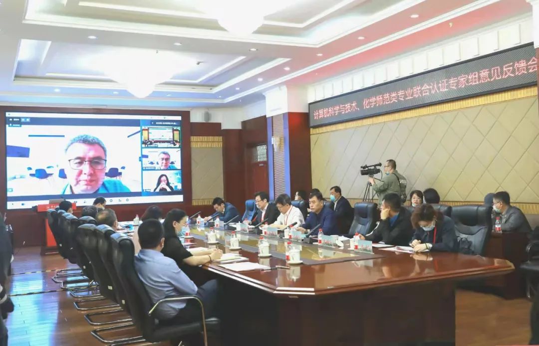 (张妍/文)6月8日上午,学校以线上线下相结合方式,在行知楼0107会议室召开师范类专业认证专家意见反馈会。专家组联合组长兼计算机科学与技术专业认证专家组组长林松柏,成员东北师范大学赵长明、黑龙江大学吴华洋、佳木斯市教育局于庆澎,秘书辽宁师范大学李鹏飞;化学专业认证专家组组长毕华林,成员齐齐哈尔大学李奇楠、南京师范大学周晓静、大庆教师发展学院高树忠,秘书东北农业大学徐荻秋;我校校长孙立军及领导班子相关成员出席会议。相关学院院长、教学院长,相关职能部门负责人,计算机科学与信息工程学院、化学化工学院领导班子及参评专业负责人,学生代表参加会议。全体师范类专业负责人、各师范专业相关工作负责同志线上参会。会议由林松柏主持。