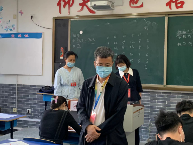 在四六级考试现场,孙立军重点查看了考生入场扫码和体温检测、防疫物资准备以及监考教师到岗、考生缺考和考场环境卫生等情况。孙立军强调,大学外语四六级考试是一项全国性的大型考试,具有极强的规范性、程序性和纪律性,要强化责任担当,强化疫情防控风险意识,加强各环节安全制度保障,严格教师监考规范和考风考纪管理,以“零差错”确保考试顺利、安全。
