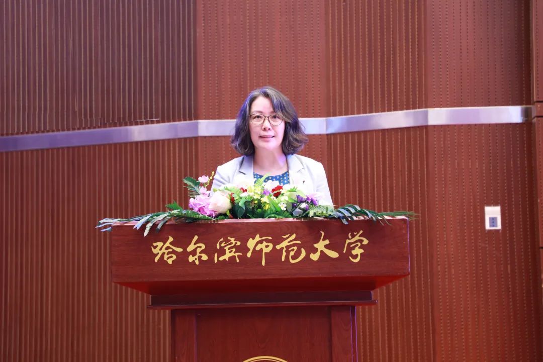 图 教师代表、黑龙江省高校教师教学创新大赛一等奖获得者、法学院优秀青年教师林秋发言