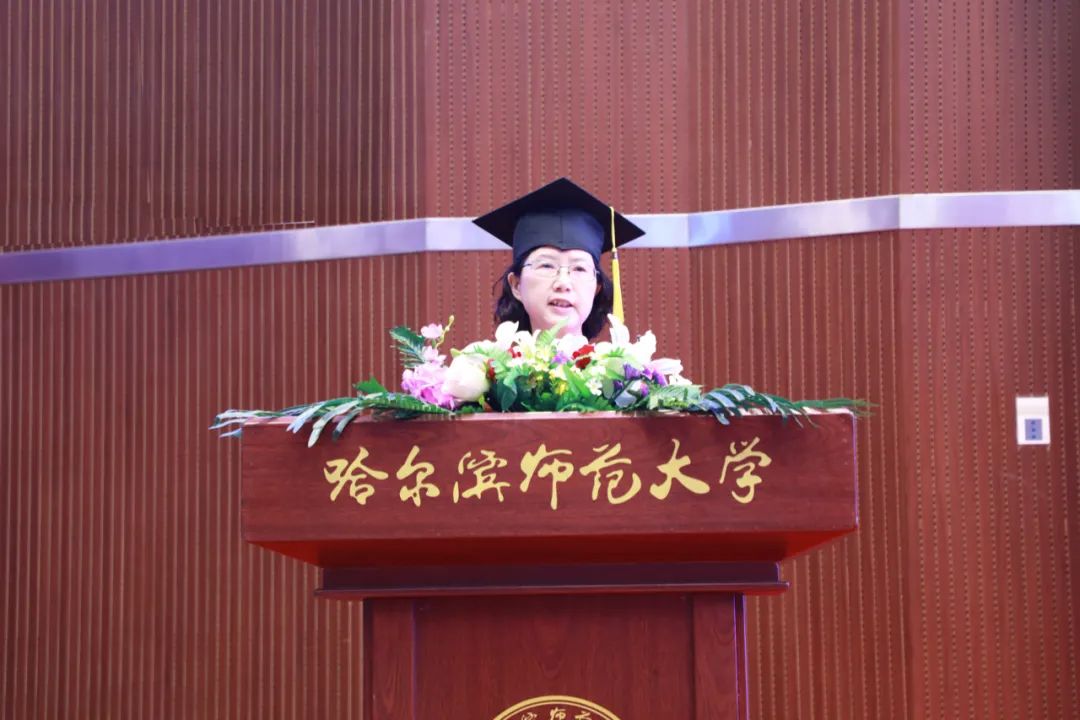 教师代表、黑龙江省高校教师教学创新大赛一等奖获得者、法学院优秀青年教师林秋在致辞中,深切寄语毕业生,做拥有梦想的人,踏平前进路上的荆棘和坎坷,能忍受现实生活的煎熬与寂寞;做勇于攀登的人,勇往直前,脚踏实地,通过自己的奋斗将理想照进现实;做热爱生活的人,在未来人生的道路上拥有战胜困难的决心、信心、恒心,以积极的进取心面对每一次磨难。林秋深情表示,无论何时,母校永远是同学们疲惫时的港湾和懈怠时的加油站。