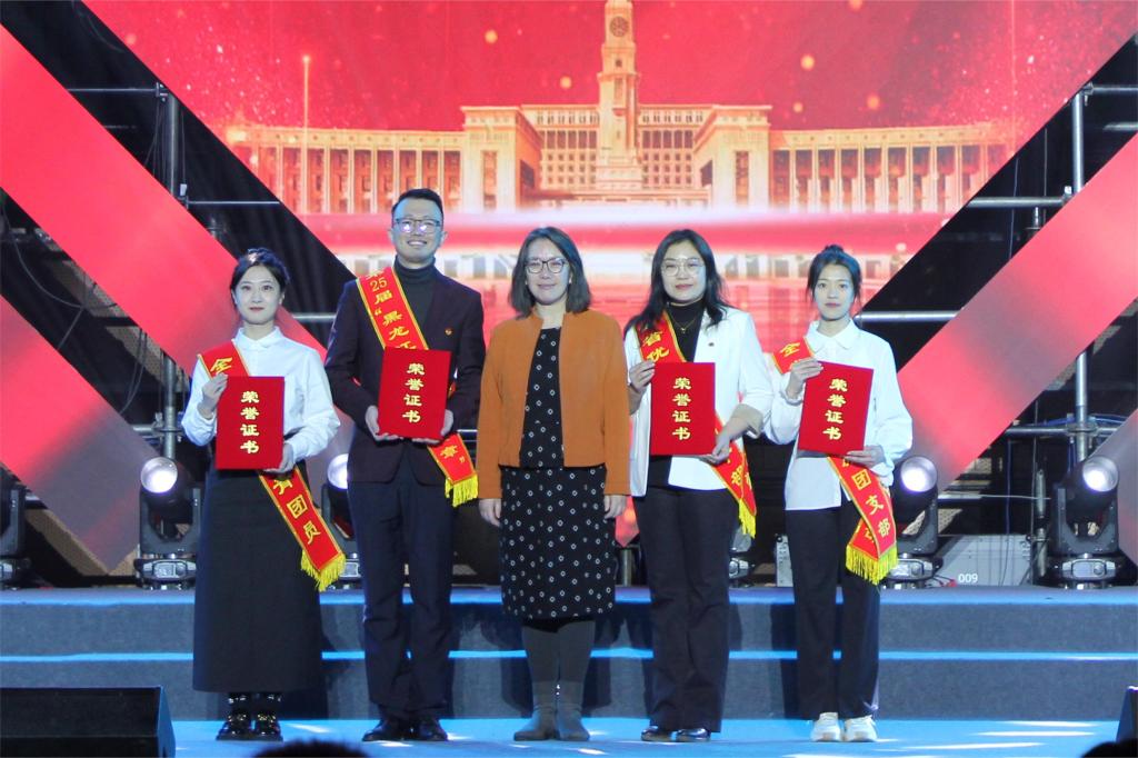 校党委副书记、工会主席郭砾为全省“两红两优”获奖者、第25届“黑龙江省青年五四奖章”个人颁奖