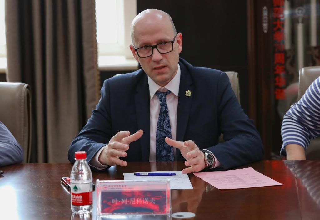 孙立军对尼康诺夫教育代表团一行表示热烈欢迎,并向代表团介绍了我校的基本情况、优势学科及国际交流方面取得的成果。孙立军表示,今年3月,习近平主席访俄为两国关系行稳致远注入了新的强劲动力。教育合作是双方人文交流的重要组成部分,黑龙江省制定了《教育向北开放发展行动方案》,为加强双方在教育领域的合作交流奠定了坚实基础。此次俄罗斯哈巴罗夫斯克边疆区教育领域代表团的到访对我校贯彻落实“教育向北开放”战略具有重要意义。孙立军指出,对俄合作是我校今年的重点工作之一,我校“中俄美术联盟”项目正在积极筹建中,诚挚邀请哈巴罗夫斯克边疆区艺术领域高校加入该联盟。同时,希望在基础学科和师范教育等方面与俄罗斯高校开展深入合作,借鉴俄罗斯师范教育的先进经验,在新材料、物理、化学、生物、数学、经济、管理、法律等学科建设方面加强合作交流,实现共赢,增进友谊,共同谱写“教育向北开放”新篇章。
