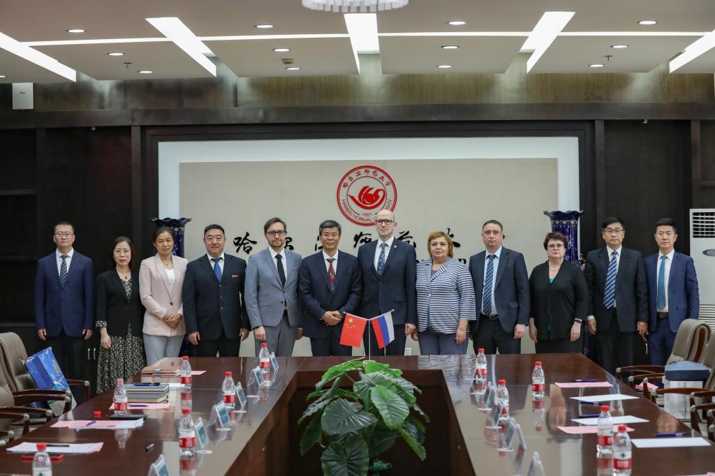 (林云贺/文)5月24日下午,哈巴罗夫斯克边疆区政府副主席尼康诺夫教育代表团一行访问我校。我校党委书记孙立军会见了代表团。会议由国际交流合作处处长王彬主持。