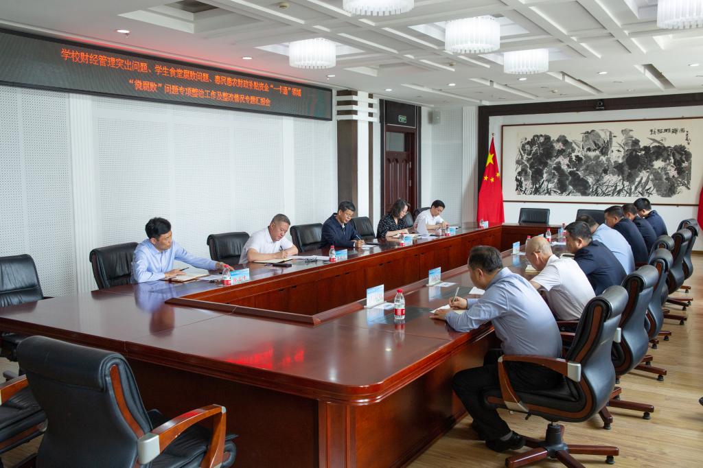 财经管理突出问题自查自纠工作专班办公室主任杨宝君,学生食堂腐败问题专项整治工作专班办公室主任穆春勇,惠民惠农财政补贴资金“一卡通”领域“微腐败”问题专项整治工作专班办公室主任王彦庆(兼),纪委副书记、纪委办公室副主任高峰依次就专班自查自纠以及财经纪律审计发现的共49个问题工作整改进展情况进行了汇报。