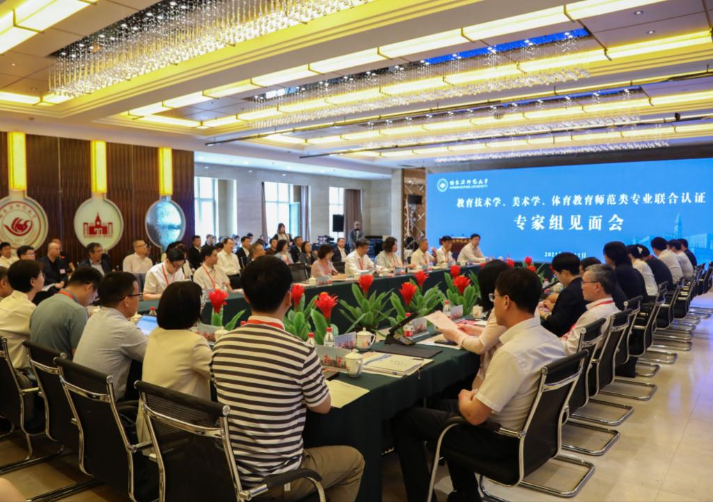 6月12日上午,学校在梦溪宾馆金色大厅召开师范类专业认证专家组见面会。联合大组长兼教育技术学专业认证专家组组长、东北师范大学郑燕林教授及成员辽宁师范大学教育教学质量监控与评价中心肖立莉教授、曲阜师范大学张良才教授、河南省基础教育课程与教学发展中心教师部戢明主任,秘书常熟理工学院师范学院徐祖胜副教授;美术学专业认证专家组组长鲁迅美术学院李书春教授及成员华中师范大学美术学院王文新教授、宁波大学教育督导与教学评估中心郑春龙研究员、甘南县第二中学李发校长,秘书黑龙江省农业工程职业学院智能分院刘勇副教授;体育教育专业认证专家组组长陕西师范大学体育学院万炳军教授及成员白城师范学院金向军教授、南京师范大学体育科学学院王庆军教授、佳木斯市教育局于庆澎调研员,秘书河南省教育评估中心认证部郑晓玲副主任;省教育评估院院长景丽英、项目管理员张立明出席会议。我校党委书记孙立军,党委副书记、工会主席郭砾,党委副书记李庆霞,党委常委、副校长马明,党委常委、副校长张喜田,党委常委、纪委书记、省监委驻哈尔滨师范大学监察专员姜国庆,党委常委、副校长王辉,党委常委、副校长徐国峰,党委常委、人事处处长李世彬,党委常委、统战部部长张志宏,相关职能部门负责人,教育科学学院、美术学院和体育科学学院领导班子及参评专业负责人参加会议。