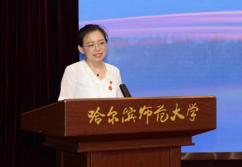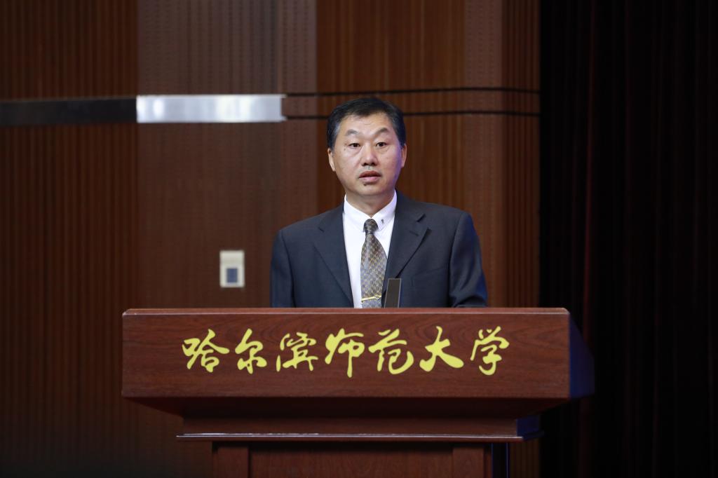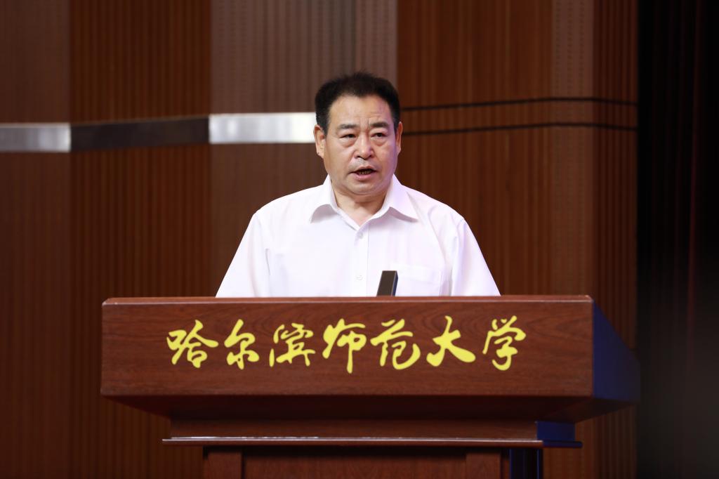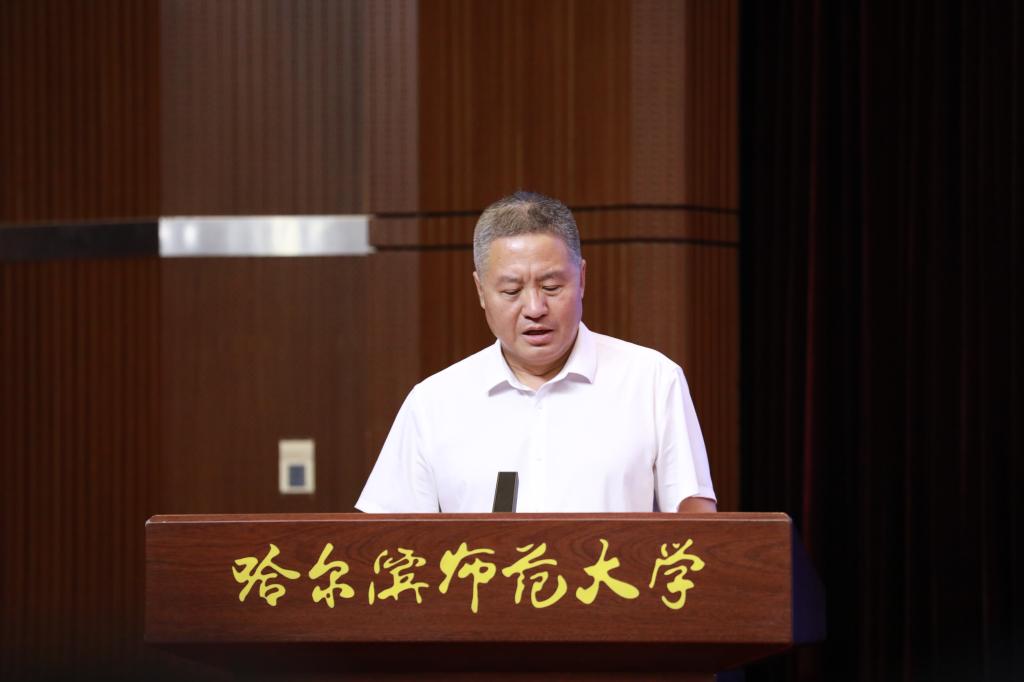 党委常委、纪委书记、省监委驻哈尔滨师范大学监察专员姜国庆宣读“大学生志愿服务西部计划”和“助力兴边富民计划”志愿者名单