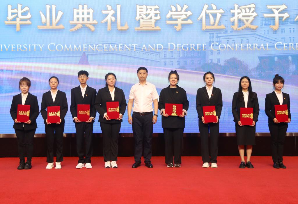 党委副书记、工会主席郭砾为2023届优秀毕业生代表颁发荣誉证书