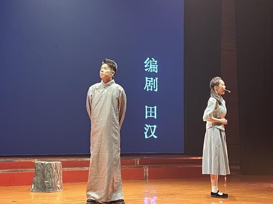 大型红色历史话剧《田汉》讲述了中华人民共和国国歌的词作者田汉,作为一个大艺术家鲜为人知的革命心路历程。故事通过田汉创作的五部戏剧作品(《日本戏》《乡愁》《莎乐美》《一致》《关汉卿》),回顾了中国早期戏剧发展的历程及其加入“左联”前后的的革命经历。该剧是传媒学院表演艺术系2020级戏剧表演专业的毕业剧目,由表演艺术系专业教师尹一鸣导演。全剧采用戏中戏的的独特结构,用影像和戏剧舞台相结合的纪实手法,还原了艺术家田汉的人生故事,再现了作为戏剧家、教育家田汉在红色思想的照耀下,革命思想逐渐成熟的历程。