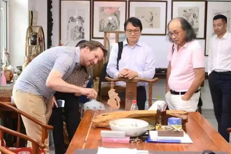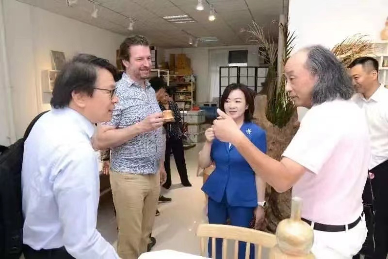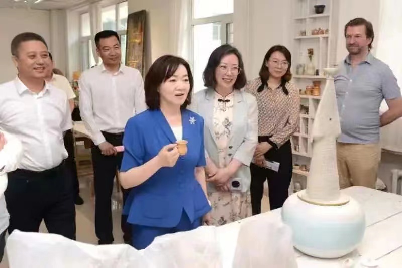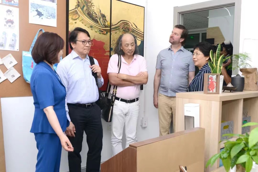 (于曜铭/文)7月5日上午,中国工业设计协同创新平台秘书长、深圳市工业设计行业协会会长封昌红与世界设计组织一行来我校就创意设计合作开展专题调研,并参观学校创意设计产业学院建设成果展和创意设计产业园。世界设计组织主席大卫·库苏马,世界设计组织秘书处总经理伯特兰·迪罗姆,河北工业设计创新中心运营总监王洁,省委宣传部副部长尚铁权,省委、市委宣传部相关同志出席调研活动。我校党委副书记、工会主席郭砾,副校长臧淑英陪同调研。创意设计产业团队相关负责人参加调研活动。
