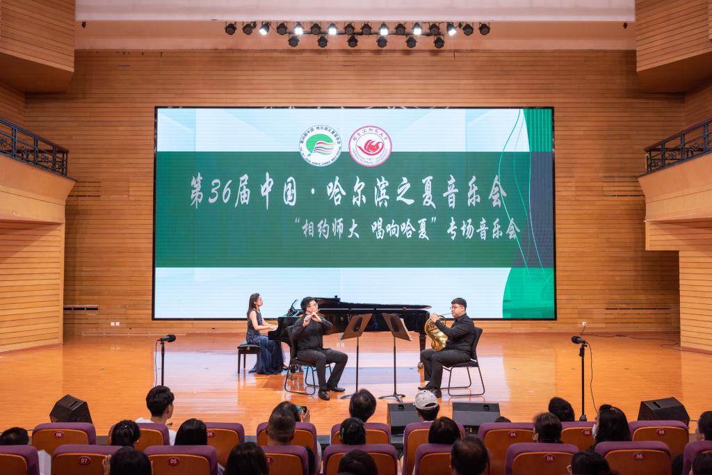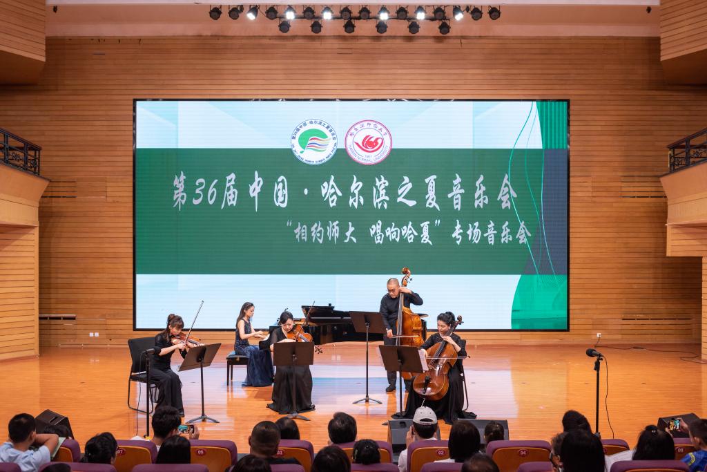 整场音乐会琴声百转、曲意飞扬,我校音乐学院教师们以独唱、重唱、独奏、重奏等多种形式演绎经典、讴歌时代,历年来在哈夏音乐会期间为冰城观众献上多场高水平、高标准的艺术盛宴,学校承办的“国际手风琴艺术周”被列入第36届哈夏音乐会七大板块之一,用哈师大旋律唱响哈尔滨之夏“人民幸福”“山水共融”“美美与共”的盛世欢歌。