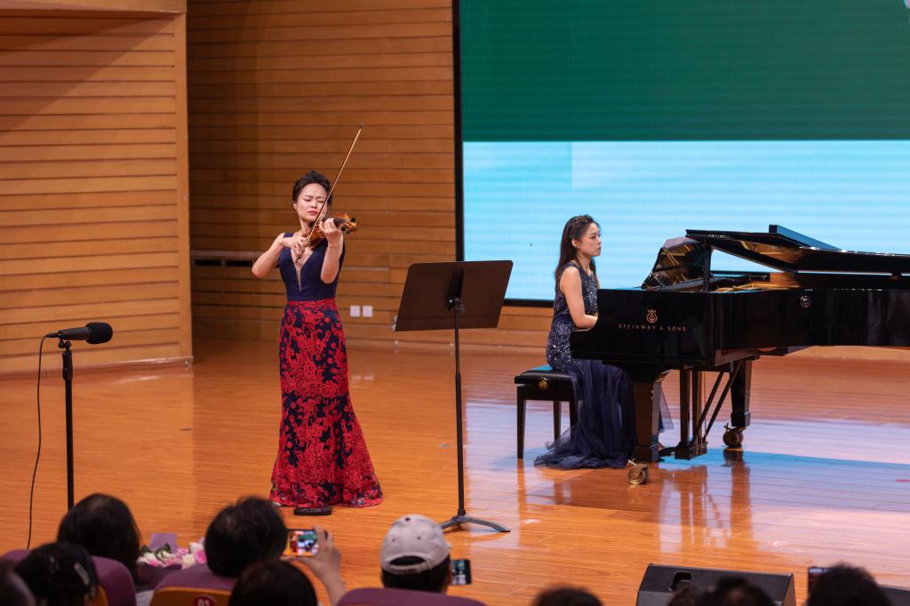 随后,长笛、圆号与钢琴三重奏响起,舒缓悠扬的旋律让观众沉醉,富有异域音乐色彩的维吾尔族民歌《阿瓦尔古丽》,唯美灵动的二胡独奏《火——彩衣姑娘》,选自罗西尼歌剧塞维利亚理发师的《谣言诽谤》幽默诙谐,声悠意远的古筝独奏《铁马吟》,气势恢宏的歌曲《新的天地》,将观众带入异彩纷呈的音乐之旅。钢琴独奏《F小调第4号叙事曲》作品号52婉转的乐思流动指尖,深情的俄罗斯艺术歌曲《白色的鸟》旋律让人沉醉,小提琴独奏《流浪者》弓弦挥洒、经典再现,歌曲《秋水长天》将中国古诗词与现代音乐元素相融合,舒伯特“鳟鱼”弦乐五重奏华丽明朗、流光溢彩,经久传唱的声乐歌曲《蝶恋花·答李淑一》细腻委婉又大气磅礴,为与会嘉宾和观众留下精彩难忘的音乐回忆。