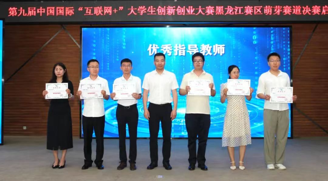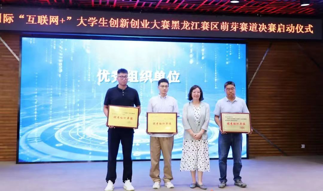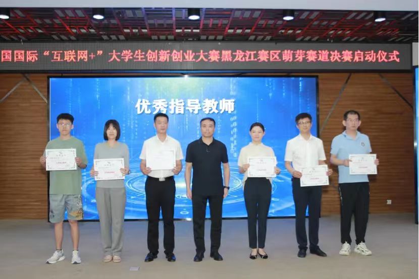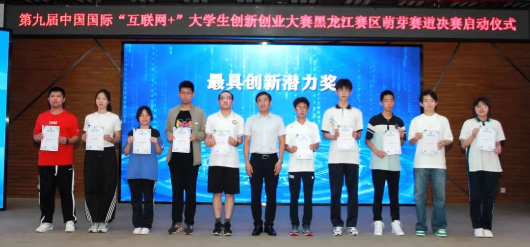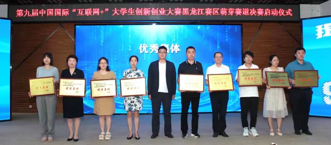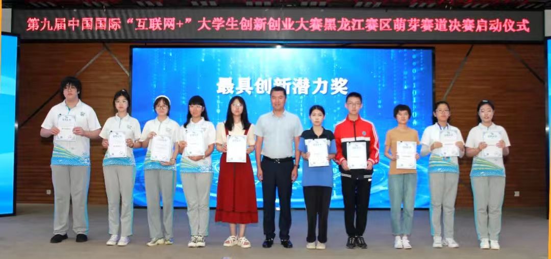 启动式上表彰了第八届“互联网+” 黑龙江赛区萌芽赛道大赛中荣获最具创新潜力奖项目、优秀指导教师、优秀集体、优秀组织单位的集体和个人。
