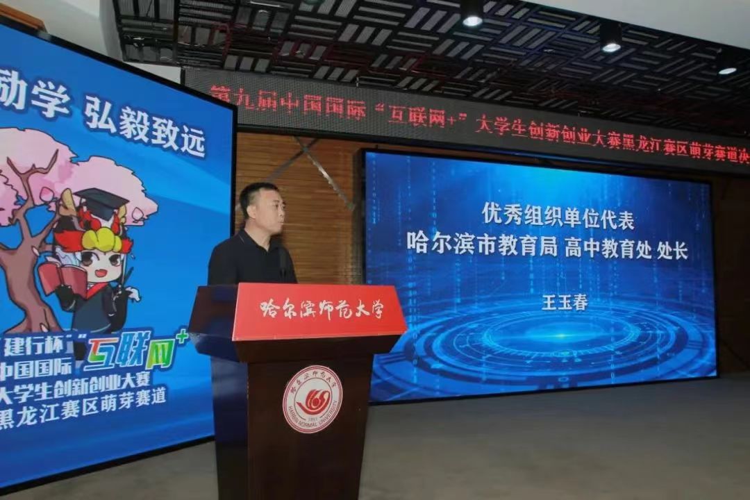 (涂德虎/文)7月30日,由黑龙江省教育厅主办、哈尔滨师范大学承办、哈尔滨润迪体育俱乐部有限公司协办的第九届中国国际“互联网+”大学生创新创业大赛黑龙江赛区萌芽赛道总决赛在我校江北校区开赛。我校党委副书记、工会主席、黑龙江赛区萌芽赛道组委会主任郭砾,黑龙江省教育厅基础教育处副处长陆维超,哈尔滨市教育局高中教育处处长王玉春以及各地市教育局领导、高中校长、参赛师生代表等200余人出席决赛启动仪式。我校团委书记刘春玲主持启动仪式。