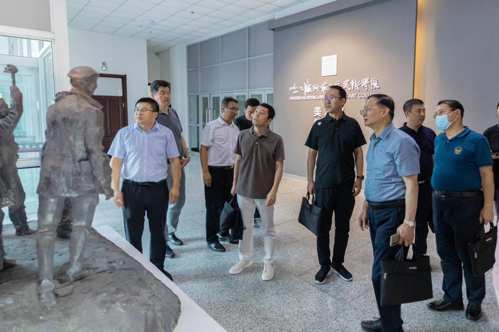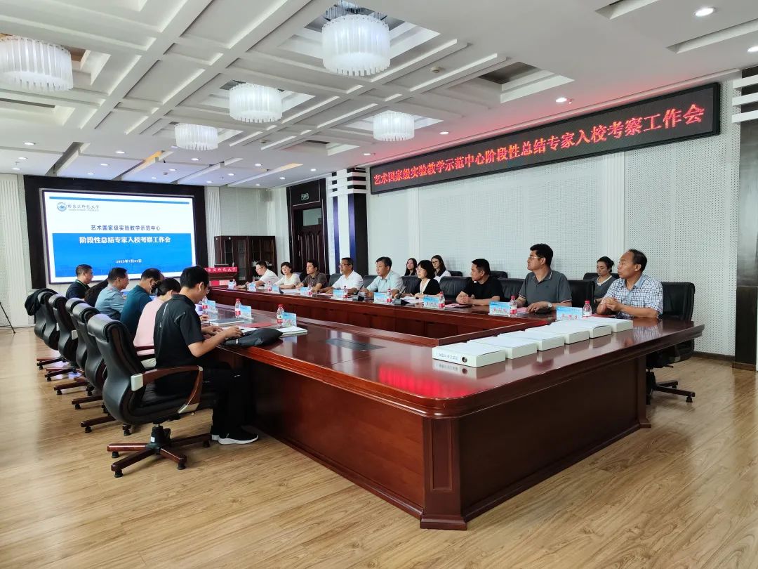 (肖海扬/文)为进一步规范和加强国家级实验教学示范中心建设与管理,按照《教育部高等教育司关于开展国家级实验教学示范中心阶段性总结工作的通知》和《黑龙江省教育厅关于开展国家级和省级实验教学示范中心阶段性总结工作的通知》要求,7月31日,省教育厅考察组对我校艺术国家级实验教学示范中心开展入校实地考察工作,考察组成员由南方医科大学董为人教授、山东大学戚桂杰教授、四川大学蒲丹教授、哈尔滨工业大学赵雅琴教授、东北林业大学李明泽教授、黑龙江科技大学王永东教授组成,董为人教授担任组长,王永东教授担任联络员。考察工作分为学校汇报、示范中心汇报、专家现场提问、查阅材料、实地走访和师生随访六部分。校长蒋鲲出席会议并讲话,教学实验设备管理中心、教务处、示范中心及相关学院负责人、实验室负责人及中心固定人员代表参加会议,会议由党委副书记李庆霞主持。