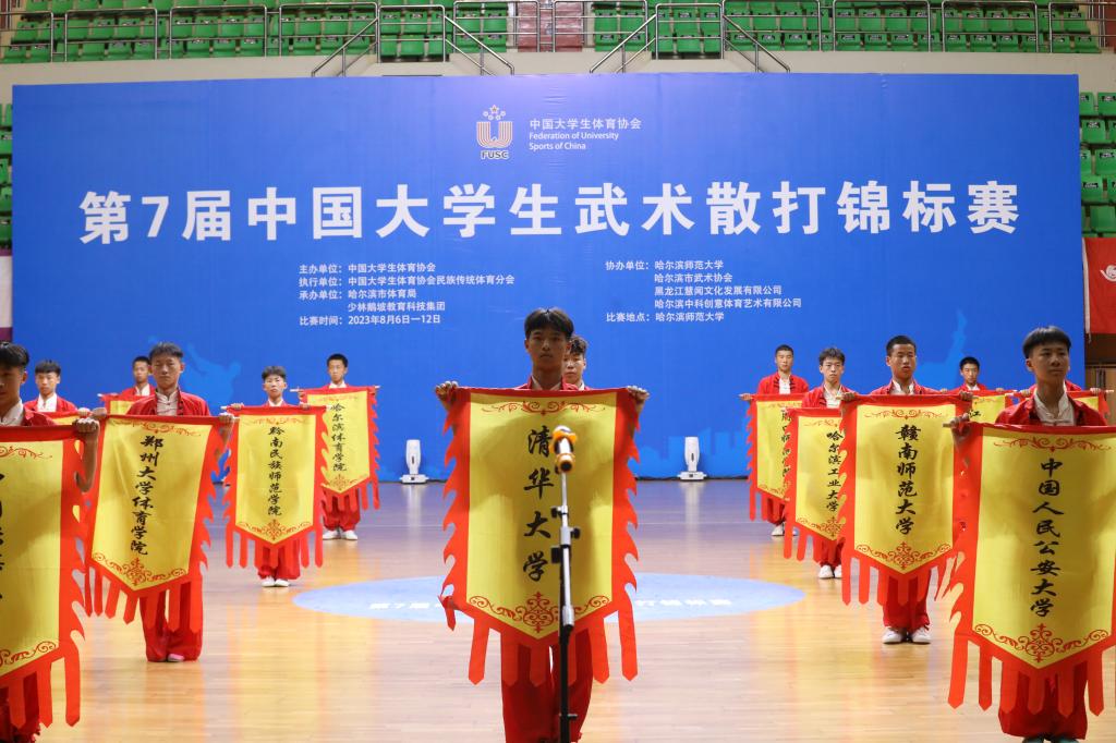 (张柏卓然/文)为进一步推动学校体育工作开展,全面实施素质教育,增强学生体质健康,培养优秀体育人才,8月6日至12日,第7届中国大学生武术散打锦标赛在我校举行。本次赛会由中国大学生体育协会主办,哈尔滨市体育局、少林鹅坡教育科技集团承办,哈尔滨师范大学、哈尔滨市武术协会、黑龙江慧闻文化发展有限公司、哈尔滨中科创意体育艺术有限公司协办。