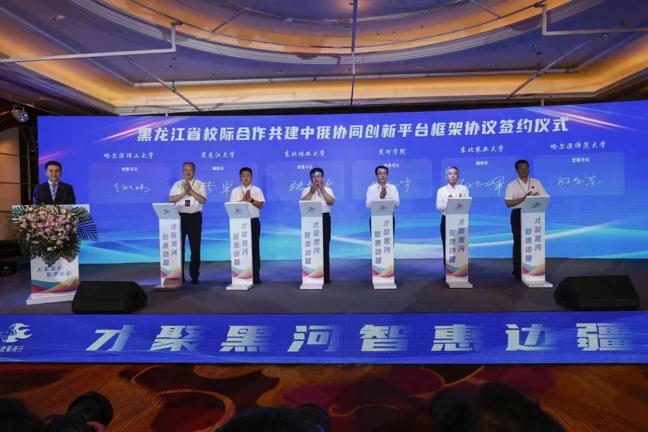 孙立军代表学校与黑河学院签订了“黑龙江省校际合作共建中俄协同创新平台框架协议”。协议双方将充分发挥在科技、人才、设备、信息及国际合作等方面优势,双向赋能、互利共赢,共建中俄协同创新平台,力争在更深层次、更多领域开展务实合作,努力推动高校与地方社会经济发展同向并行,竭力打造校地合作发展新篇章。