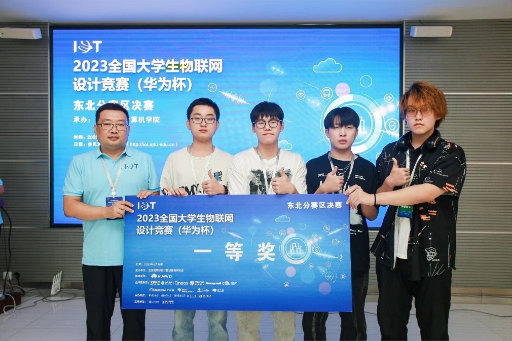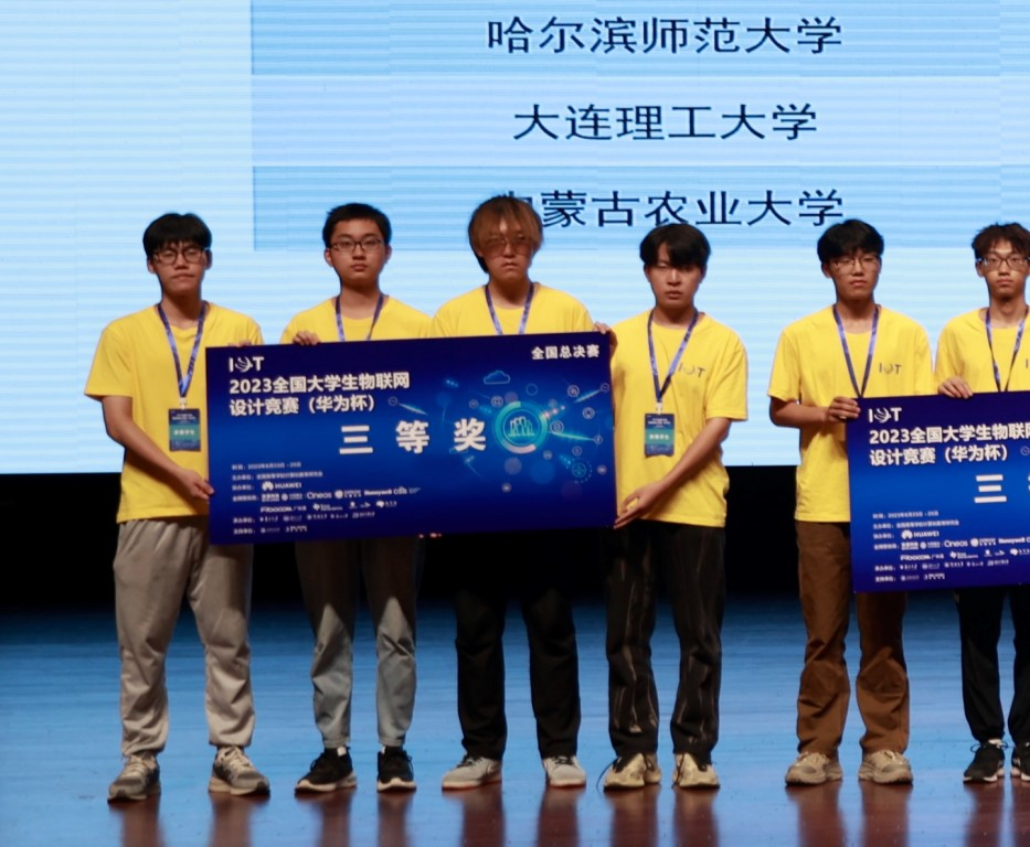 在2023年第十届全国大学生物联网设计竞赛(华为杯)中,由我校计算机科学与信息工程学院李世明副教授、倪蕴涛副教授指导,物联网工程专业2021级李明阳和陈炫宏、2022级乔涵宇和王瑞四名同学合作完成的《无人值守的特种环境蔬果管理库》项目荣获东北赛区一等奖、全国三等奖。该作品是总决赛中黑龙江省师范类院校唯一作品。
