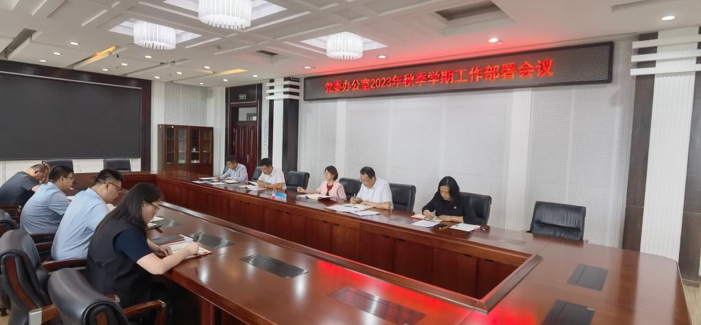(董天时/文)为迅速落实学校2023年秋季学期工作会议精神,把党委办公室全体人员的思想和行动统一到学校党委要求上,围绕高质量发展观念谋划推进下半年重点工作,8月30日下午,党委副书记李庆霞深入党委办公室参加2023年秋季学期工作部署会议。党委办公室全体成员参加会议。会议由党委办公室主任宿建主持。