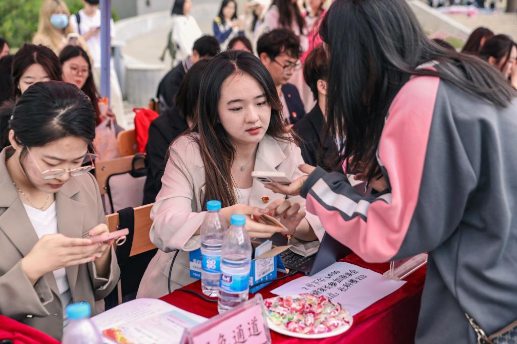 在“热烈欢迎2023级新同学”的红色拱门后,各具特色的学院迎新报到处以及热情洋溢的志愿服务点在道路两侧一字排开,热闹非凡。各部门及各学院师生以饱满的精神状态和热情周到的服务,为新生提供“从入校门到公寓寝室”全程引导服务,近千名志愿者同学投入到展台布置、行李运输、道路指引、信息咨询等各项迎新工作的志愿服务,让新生充分感受学校的热情与温暖。