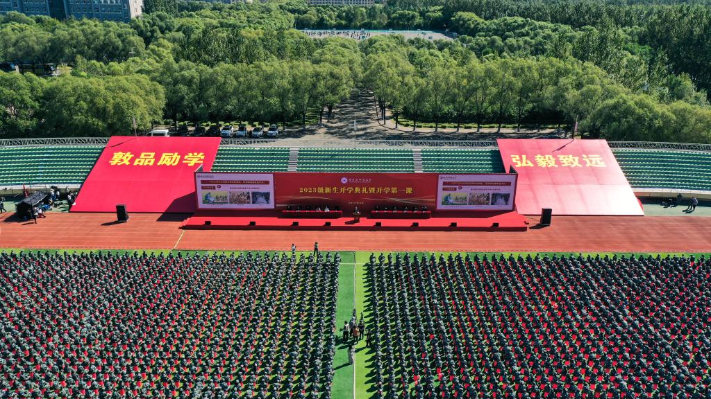 为深入贯彻落实党的二十大精神,坚持以习近平新时代中国特色社会主义思想铸魂育人,帮助2023级新同学系好大学生涯的第一粒扣子,9月5日,党委书记孙立军以“自强不息 笃行不怠 为实现中国式现代化贡献青春力量”为题,为学校10043名2023级新生讲授开学第一课。