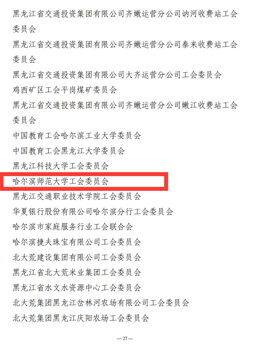 哈尔滨师范大学工会委员会始终坚持以习近平新时代中国特色社会主义思想为指导,在上级工会和学校党委的领导下,不断增强职工之家阵地的功能性、实用性和服务力,通过党工共建,提升基层工会组织的吸引力、凝聚力,构建覆盖广泛、辐射性强、贴近需求、开放共享的职工之家,在团结凝聚职工、维护职工权益、做实做细服务、助推龙江改革发展中发挥更大作用。
