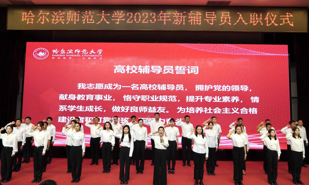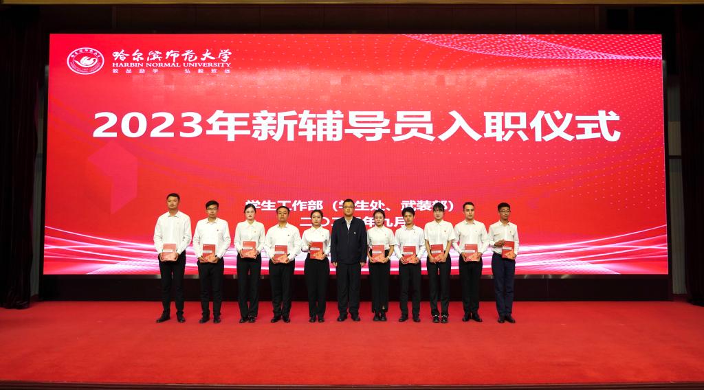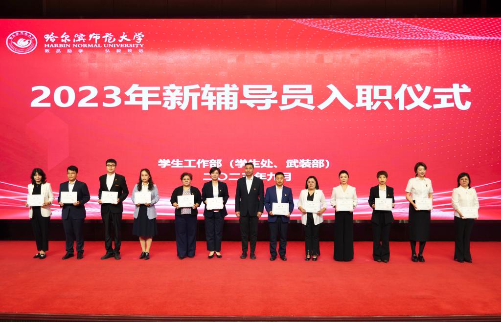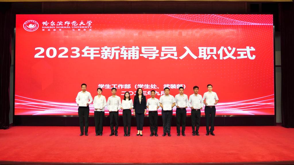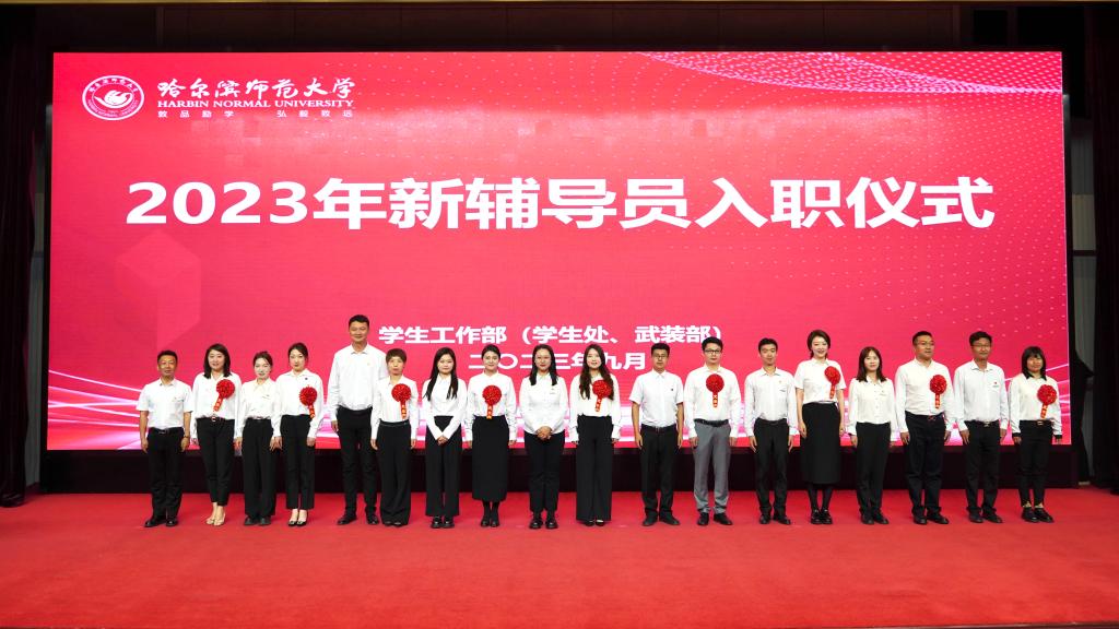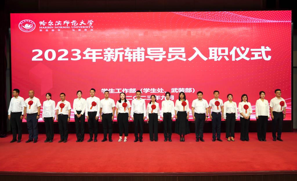 (屈怀东/文)为深入学习贯彻习近平总书记教师节重要指示精神,强化我校辅导员队伍建设专业化、职业化水平,赋能学校“国内一流师范大学”建设目标,9月12日上午,学生工作部(学生处、武装部)在科学会堂举行2023年新辅导员入职仪式。校党委副书记、工会主席郭砾,党委常委、人事处处长李世彬,党委常委、统战部部长张志宏,组织部部长刘可心,宣传部部长张艳君出席仪式。学生工作部(学生处、武装部)、校团委、学生就业指导处全体工作人员,2023年新入职辅导员核心能力提升内训班(第五期)讲师团成员,各学院党委副书记、全体辅导员参加仪式。仪式由学生工作部(学生处、武装部)部(处)长王彦庆主持。