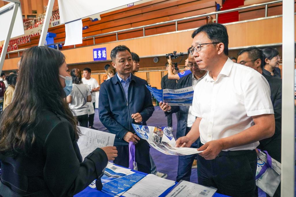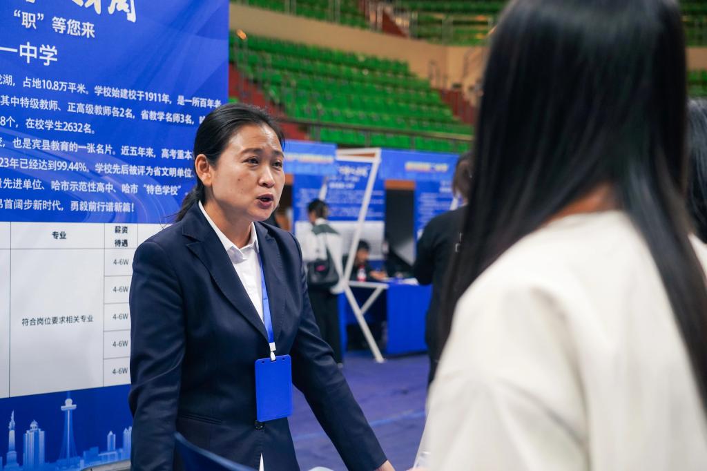 (刘轲/文)为认真贯彻落实省委省政府有关就业工作决策部署,在建设“六个龙江”打造“七大都市”工作中提供人才保障和智力支持,促进更多毕业生留省留哈就业,9月11日“聚智“惠”才,“职”等您来”2023年度哈尔滨市“丁香人才周”(秋季)专场招聘会在我校体育馆举行。本次活动由哈尔滨市人才工作领导小组办公室主办,我校携手智联招聘公司具体承办。市委组织部、市教育局领导到会指导,各学院领导、毕业年级辅导员老师和2024届毕业生参会。