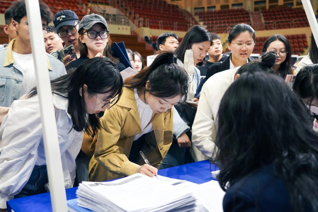 我校高度重视“丁香人才周”招聘活动,提早部署,超前谋划,各学院动员学生踊跃参会,积极就业。招聘会现场人头攒动,气氛热烈,参会毕业生在学院领导和辅导员老师带领下,在不同的单位展台前驻足、咨询、交流,对心仪的岗位积极投递简历、推销自己。本次“丁香人才周”(秋季)专场招聘会共征集到879个岗位,计划招聘1565人,其中教育系统征集到岗位619个,计划招聘800人。我校毕业生到场咨询6000余人次,意向登记4650人次,签到入场人员1863人,线上直播观看人数4.5万余人次。