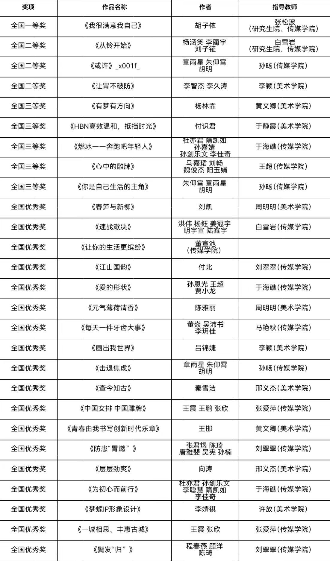 日前,第十五届全国大学生广告艺术大赛评审结果公布,我校学生共有27件实践创作斩获佳绩。